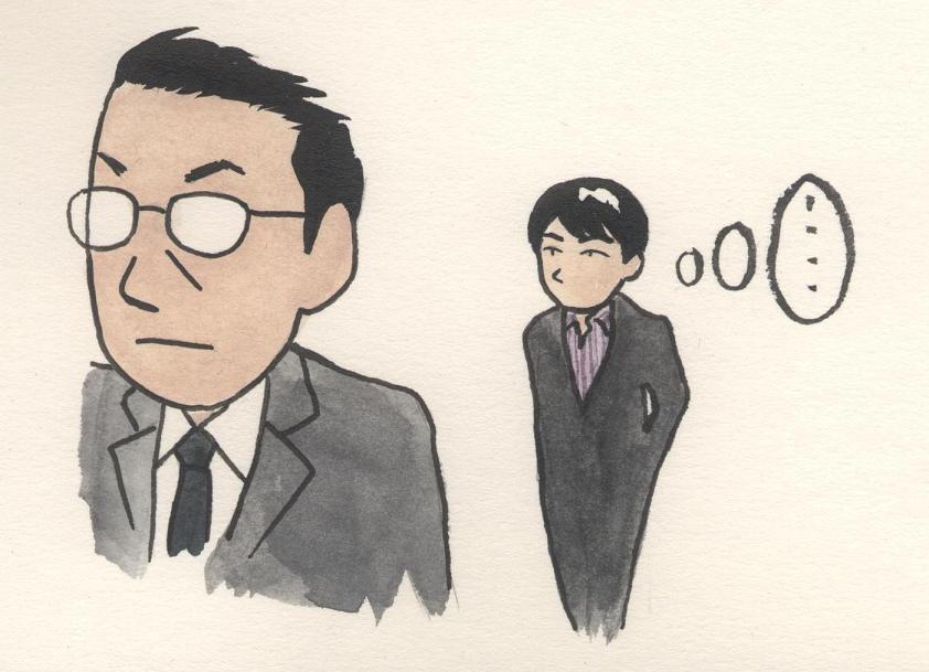 でもって、かりかりしてる暇課長を変な顔でみてる尊くん。なんか楽しそうなんですけど・・・