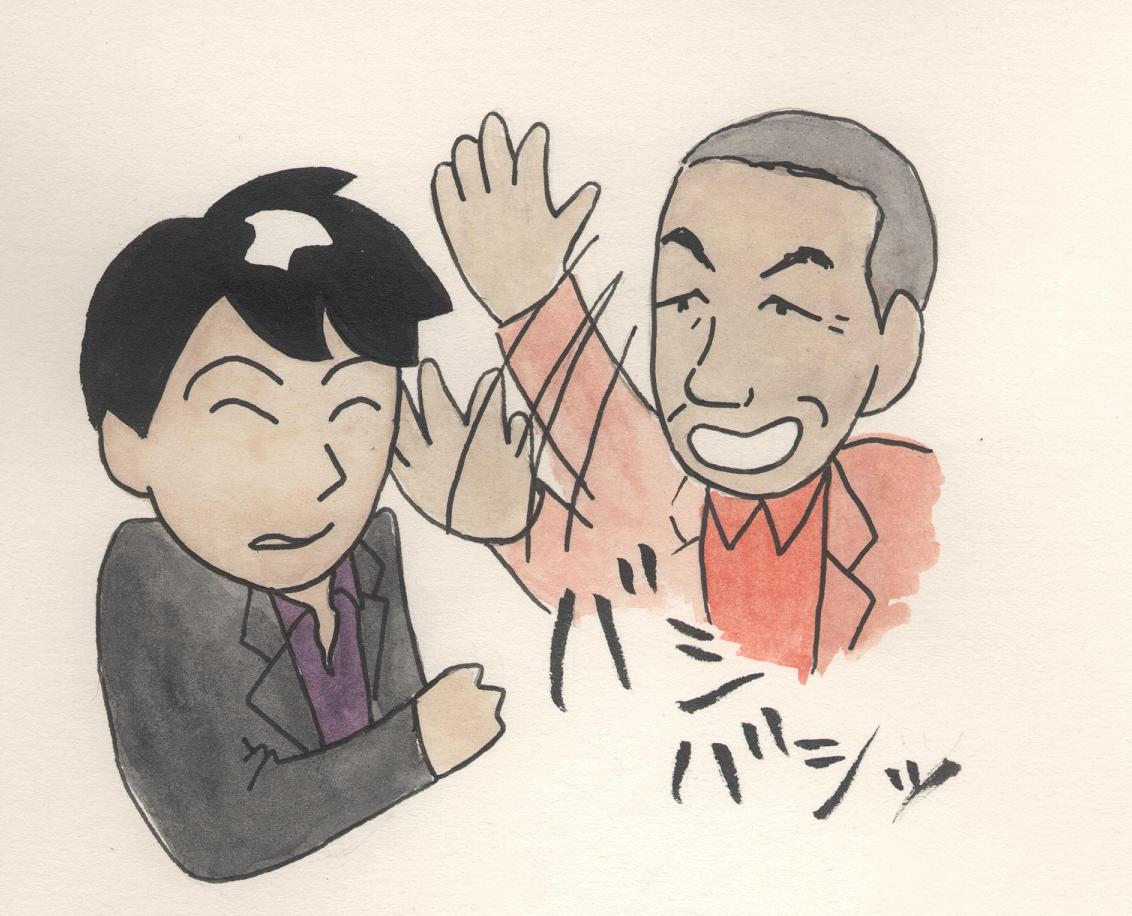 ・バッシンバッシンたたかれる尊くん。