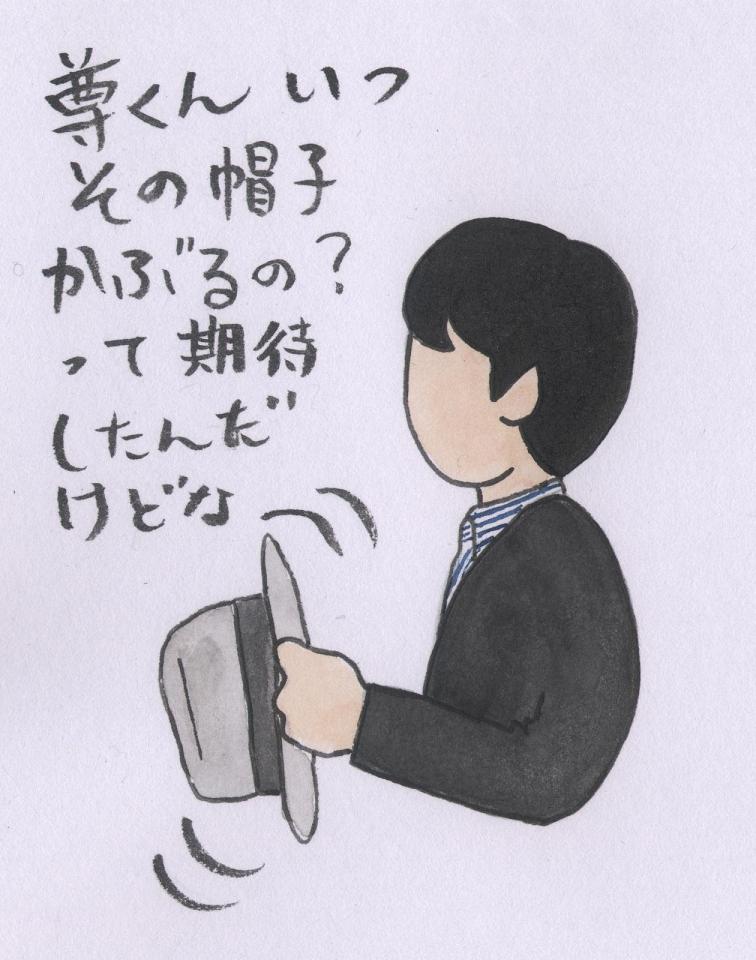 ・リサイクルショップにて、帽子くるっくるまわしてる尊くん。